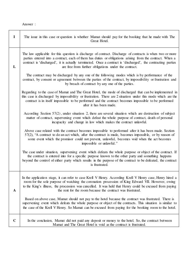 46175881 Contract Problem Sample Answer 1 Offer Amp Acceptance Problem Sample Answer I Studocu